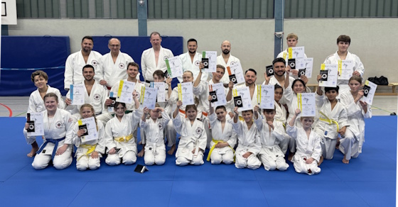Verein mit seinen Dan-Trägern, Kyu-Graden und Mon-Graden im Jiu